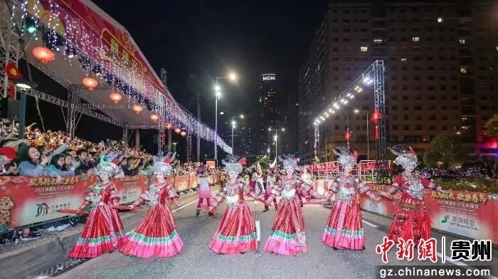 近日,记者从多彩贵州文化艺术股份有限公司获悉,贵州文旅名片《多彩贵州风》2026年春节期间,连续多日在澳门参演“欢乐春节──2026年龙腾舞跃贺新春”社区巡演,并惊艳亮相由澳门旅游局主办的“骏马腾飞欢乐春节2026农历新年花车汇演”,为全澳居民及海内外旅客献上跨越山海的民族文化祝福,受到当地民众和游客热烈好评。