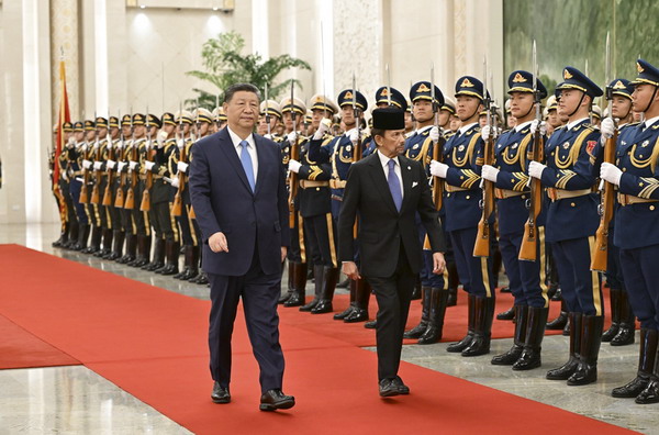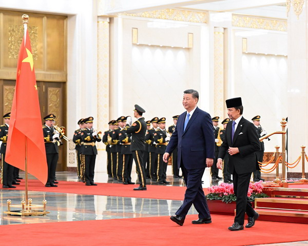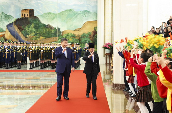2025年2月6日上午,国家主席习近平在北京人民大会堂同来华进行国事访问的文莱苏丹哈桑纳尔举行会谈。