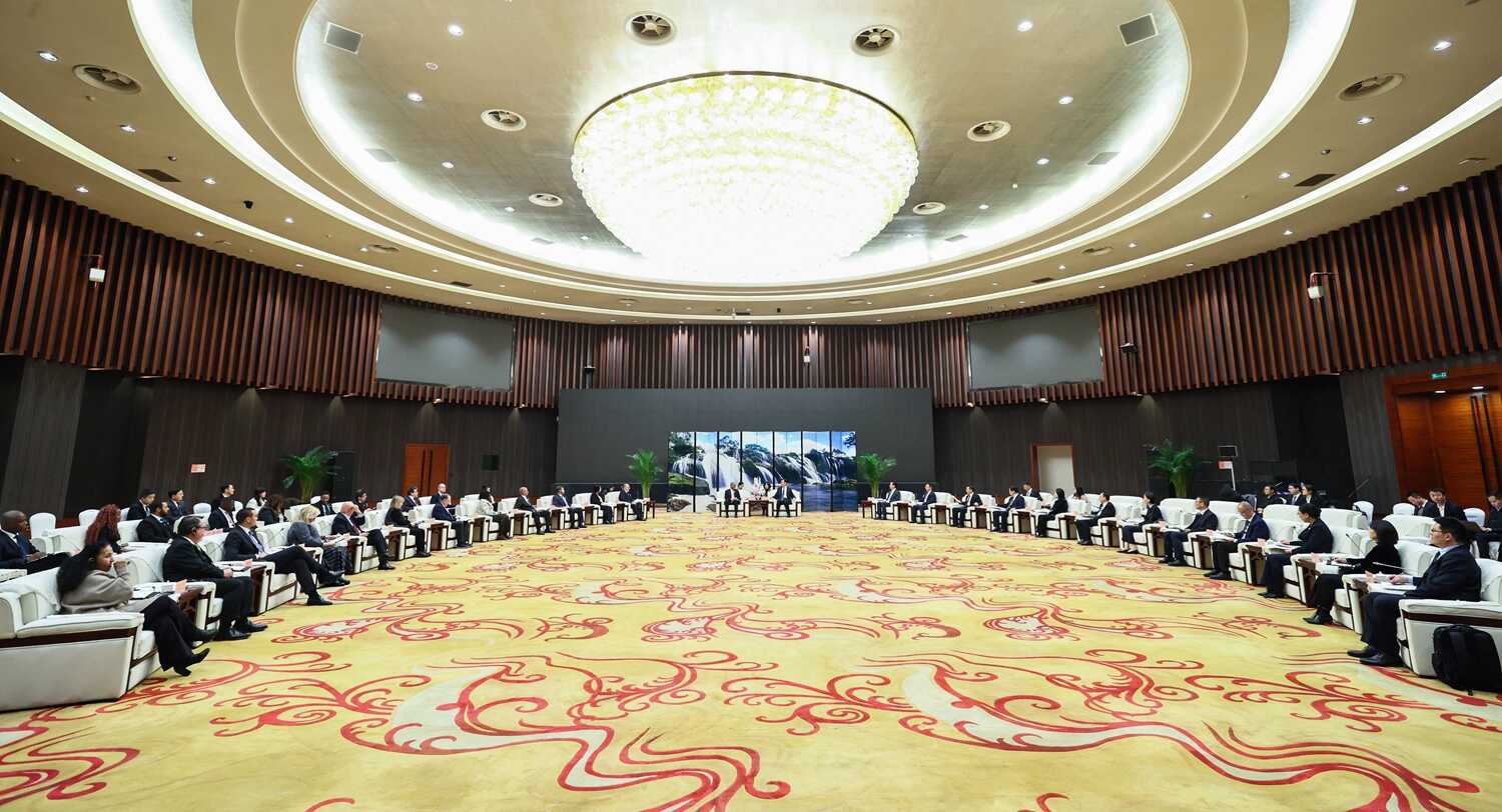 李炳军对驻华使节代表团一行表示欢迎,并简要介绍了贵州省情和经济社会发展情况。他说,习近平主席提出同拉方携手启动五大工程,为共建中拉命运共同体提供了强大动力。当前贵州正深入贯彻中共二十届四中全会精神,坚持以高质量发展统揽全局,奋力在中国式现代化进程中展现贵州新风采。希望各位驻华使节进一步关注贵州、宣传贵州,推动双方在基础设施、经贸、资源开发利用、文化旅游、生态文明、数字经济、足球等领域取得更多合作成果。