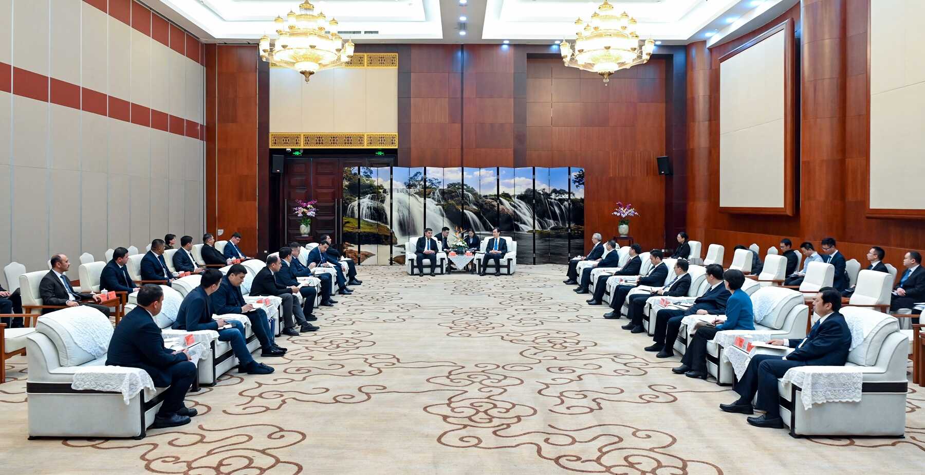 12月15日,省长李炳军在贵阳会见来黔出席2025乌兹别克斯坦(纳曼干)—中国(贵州)国际经贸交流会议的乌兹别克斯坦纳曼干州州长阿布杜拉扎科夫、驻华大使阿尔济耶夫一行。纳曼干州副州长伊纳莫夫,副省长蔡朝林参加。