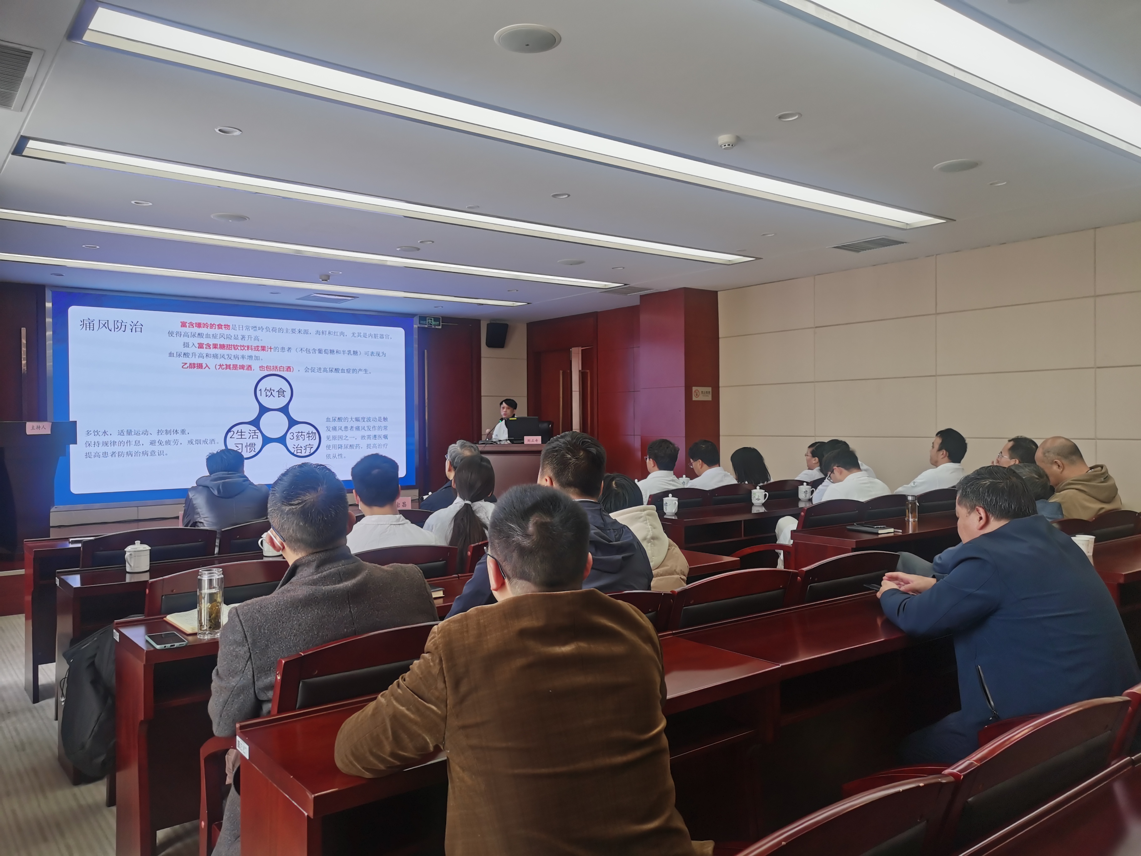 图1 贵中医大二附院刘正奇副院长、风湿免疫科主任医师作“痛风及高尿酸的防治”宣讲
